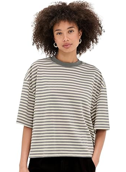 LilyCoco Womens Striped Long Sleeve Shirt Boat Neck Tops Nautical Loose Fit Tshirt